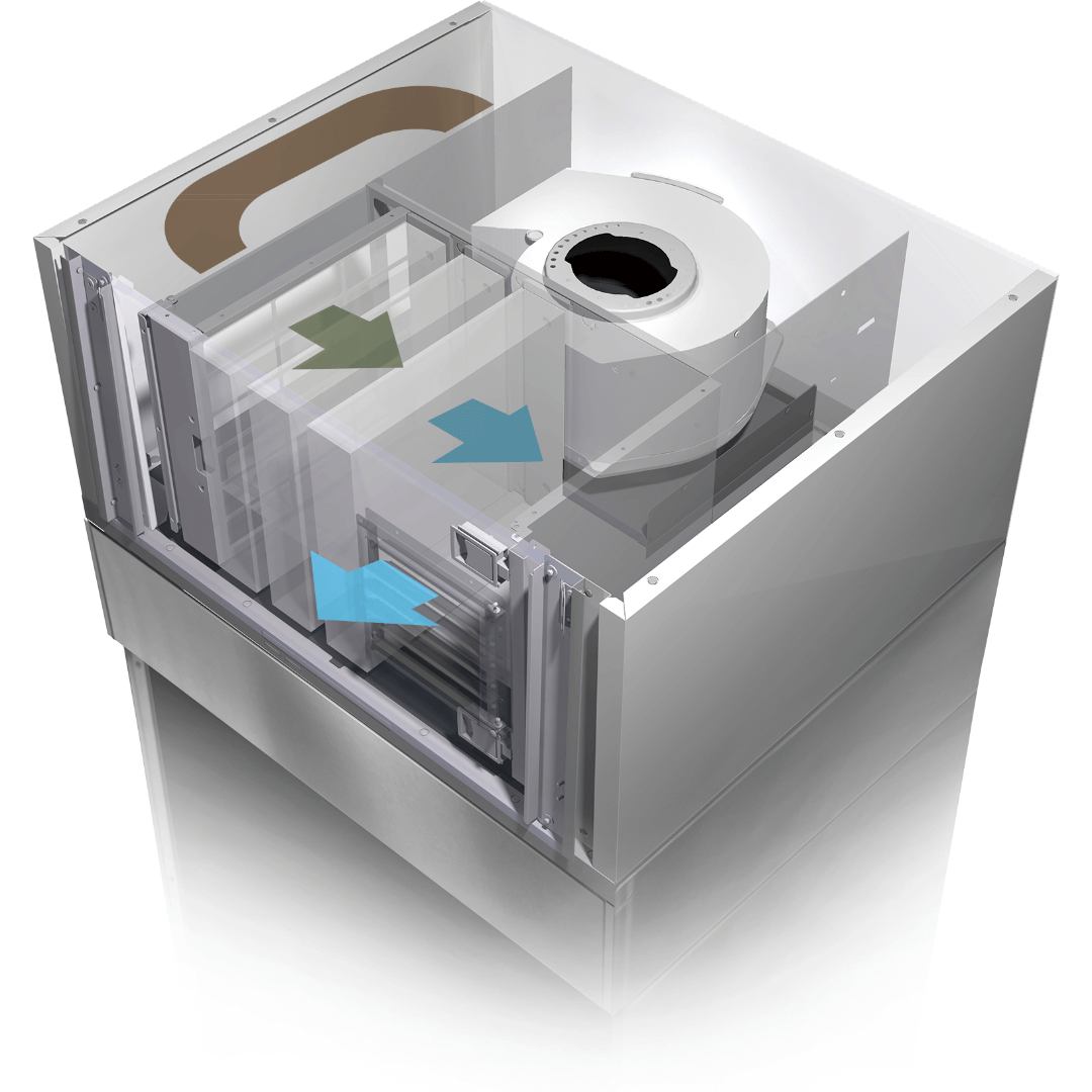 循環型クッキングオイルコレクターと組み合わせれば、高額なダクト工事不要でフライヤー導入も可能に。