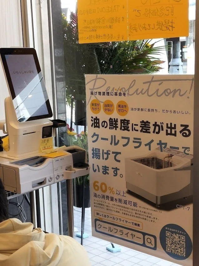 クールフライヤーを使ってよりおいしいメニューを提供して頂き、クールフライヤーを使用していることがお店の宣伝にもなるという、全くありがたい話です。